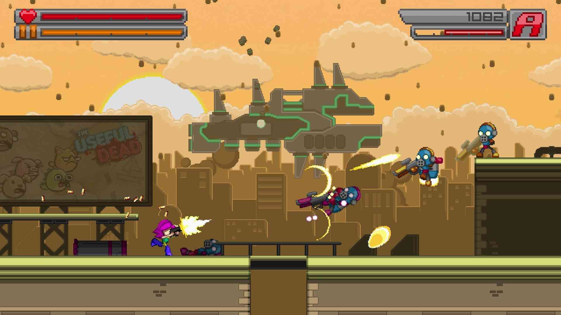 I came into Bleed 2 completely fresh, with no knowledge or skills from the original game, however, fortunately, that seemed to work in my favor. Bleed 2 is a simple tale where the protagonist, Wyrn, is playing video games in her room when all of sudden she’s interrupted by the evil chaos in the world. At that very moment, she knows of her duty, as the hero of the game, to stop it. Sure there isn’t much of a story here, other than fighting the big bads to save the world, but it’s not lacking without it. With the fast-paced action of this 2D side-scroller, it’s hard to imagine a good story would even have a place here. What pulls you in instead is the gravity-defying action that takes place in a large variety of environments, from streets and cars to ships and literal flying rockets.