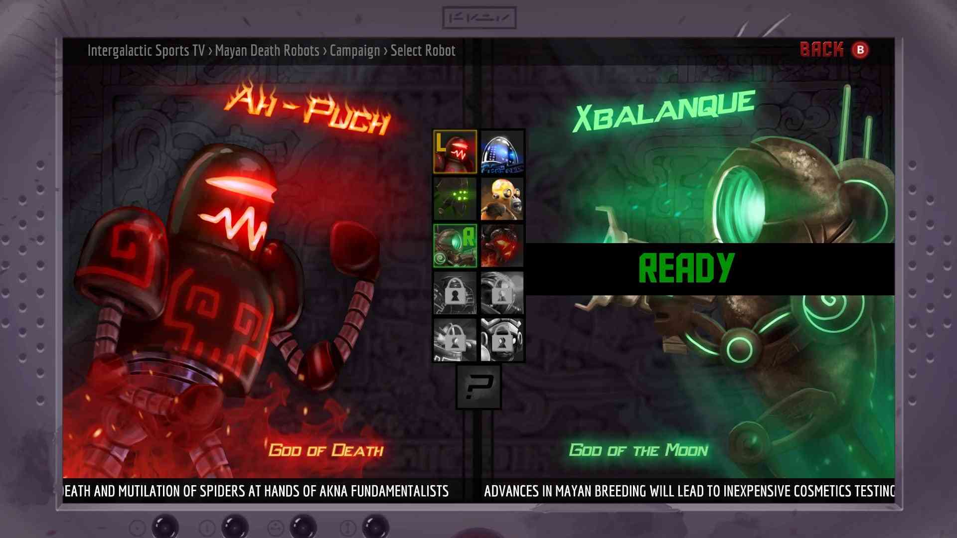 Of course, even a game as fun as Mayan Death Robots is bound to have its problems. I’m annoyed that jumping is the only way to move around, and I really wish there was a walk action. Even just a few steps was sometimes all I needed. Maybe switching out jump for a move action where players could take a set amount of time or distance to walk or jump would have been a better option. There’s also no sort of profile system, so the only way you can track wins/losses is by hand. Some sort of stats menu in general would have really brought a lot to the table, as I’m the kind of person who likes to know just exactly how much damage I’ve done, or how many blocks of land I’ve destroyed over the course of a few fights. Other than that though, there’s not a lot to dislike unless you just don’t enjoy these types of games.