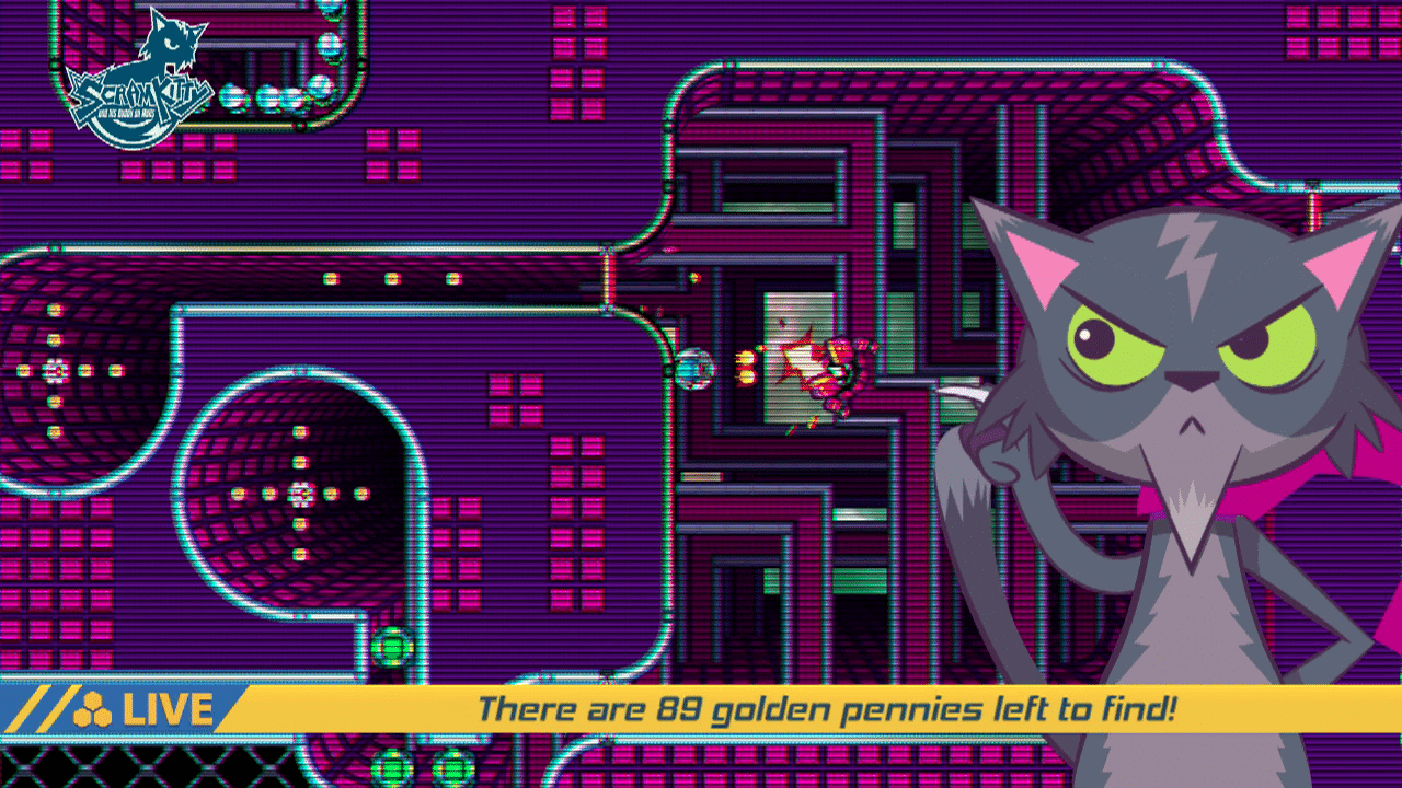 The second major part of the Scram Kitty is where you are dead. This includes all of the times in between your attempts at adventure and challenge modes. It is advised that during this period of your gameplay you refrain from throwing your Gamepad at Mrs. Paws, the British Longhair that your sister rescued from the shelter down the road. It isn’t her fault. Instead, recommended activities include listening to the cool electronic music and viewing the wonderful pixilated artwork that make up each and every level of the game. Or, one could go outside in search for a friendly dog, which are not featured at all in Scram Kitty and his Buddy on Rails…but seriously, you’ll need breaks. The difficulty level is absurd and it will more than likely take even the most seasoned of gamers a number of days to get a grasp on what this gameplay is all about. That said, what it does it does well and it pulls absolutely no punches.