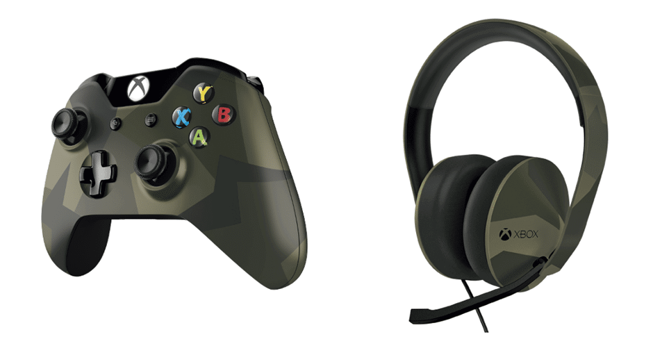 Get ready to own the battlefield with the new Xbox One Special Edition Armed Forces Wireless Controller and Stereo Headset. As the first set of custom accessories for Xbox One, the controller and headset feature a modern camouflage pattern and military look and are available for pre-order starting today in the U.S and Canada. The controller and headset will be on store shelves worldwide beginning in October and are priced at $64.99 (Xbox One Wireless Controller) and $89.99 (Xbox One Stereo Headset) USD ERP.