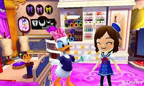 When you first start the game you can create a character or use your 3DS’s Mii character. There isn’t too much customization when it comes to the facial features, but later on you can buy clothing from Daisy and change your hair by buying wigs. Once your character is created, you find yourself in a place called Castleton where all the residents of the town are super happy to meet you! You’ll also meet many famous Disney characters. Here you’ll find out that your main goal in the game is to collect stickers. The more stickers you earn, the more skills you have, and the more areas that are available to explore. To get these stickers you have goals and favours (quests) to complete given to you by the Castleton residents, like beating an enemy, catching a certain amount of fish, or wearing a certain amount of “Ace” ensembles (complete outfits).