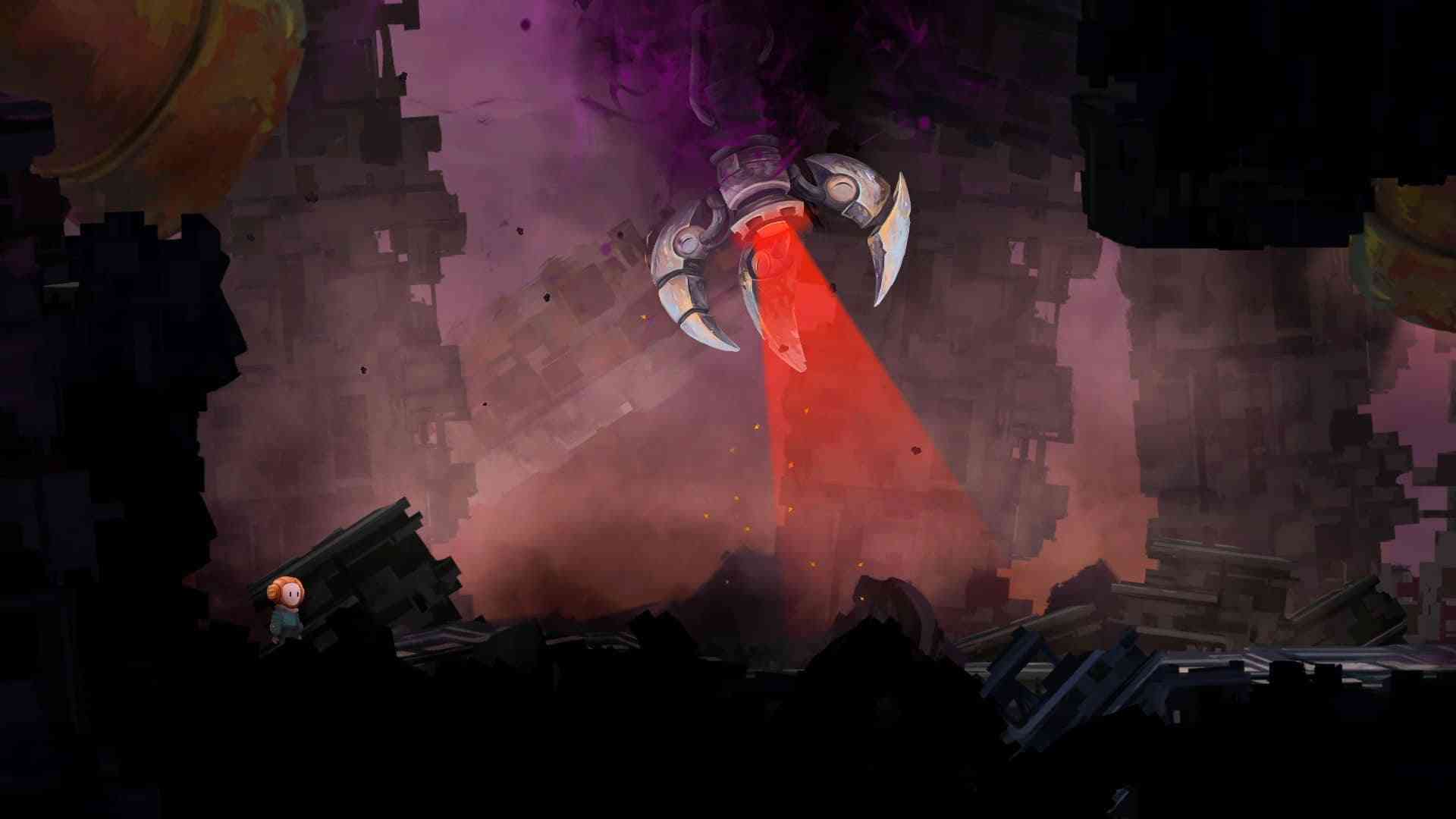 You play as San, a rudimentary yet expressively painted child and the game begins simply enough with simple puzzles based on jumping, sliding rocks onto pressure plates and some basic timing-based platforming. Not long after you get your primary tool, a bright yellow spear that has an ever-expanding list of uses: a handhold, a platform to jump onto and much more. Your spear can grind gears to a halt and when inserted in specific places, turns into a control lever for moving platforms. Some puzzle games gently ramp up the challenge and complexity, and some toss the player into the deep end of the pool with lead-weighted shoes. Happily, Out of Line is in the former category and one of its strengths, even in a relatively short preview, is how it builds its mechanics, tension and a gradually faster pace. By the end of the preview, the puzzles were much more nuanced and demanded more precision. Since the game doesn’t overtly explain much, there an expectation that the player will experiment with the tools at hand. However, the puzzles themselves do not lend themselves to multiple solutions, even if getting there involves some trial and error and a bit of head scratching.