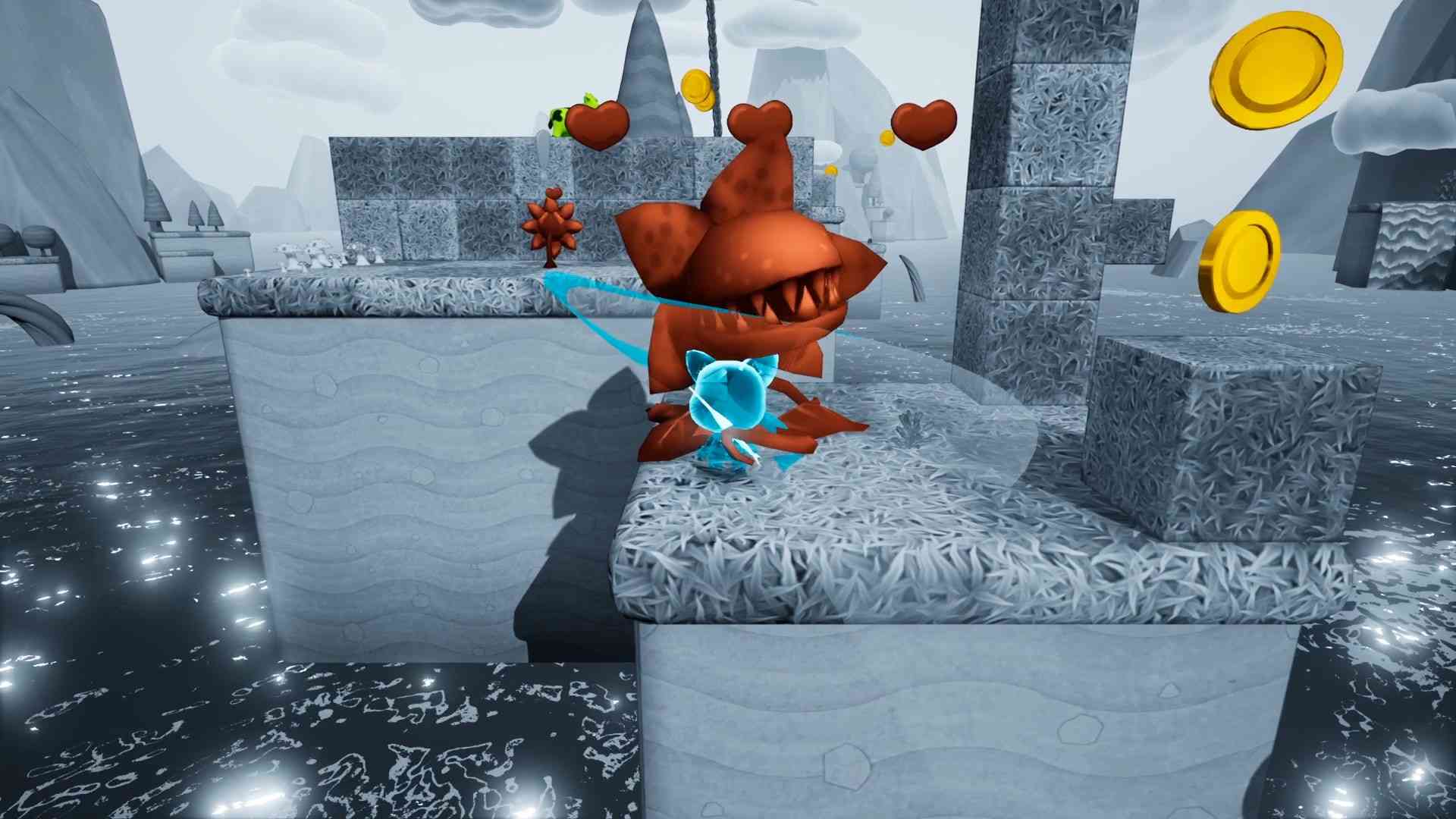 Neko Ghost, Jump! encourages exploration between solving puzzles, but it also has an emphasis placed on speedruns. A scoreboard at the end of a level will calculate the collectibles you found on any given run, how many enemies you killed, and several other things are factored into a time reduction to how long it took to complete the level. It’s like if Little Big Planet had way fewer orbs, but the orbs reduced the time it took to complete levels so that you could climb the leaderboards through multiple methods. Neko Ghost, Jump! will probably get to the point where it includes LBP levels of customization but the demo doesn’t offer much in that aspect. The gameplay needs some tweaking, but the 2D/3D design of Neko Ghost, Jump! is a lot of fun.