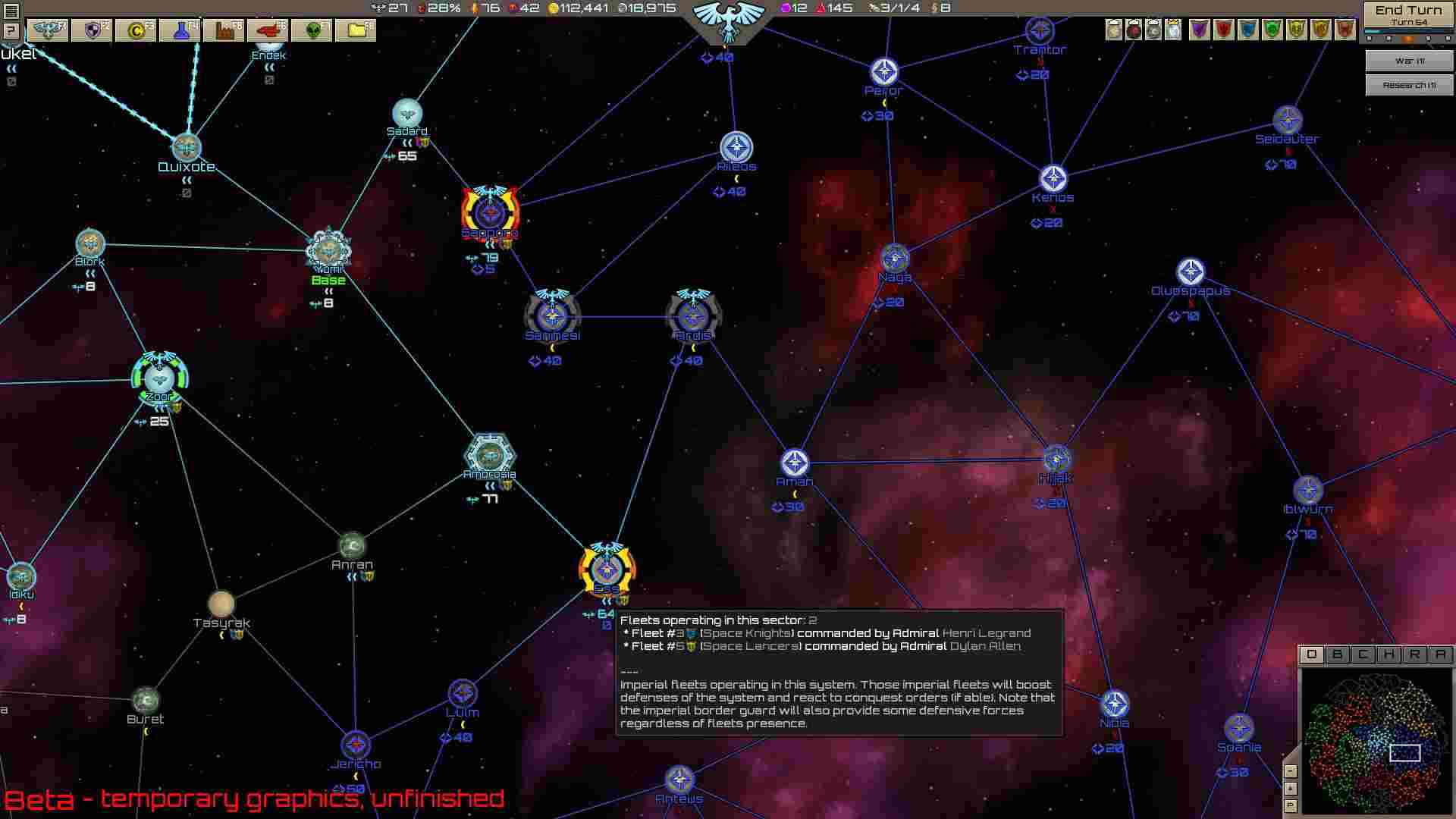 As it stands right now though, Stellar Monarch 2 is nigh unplayable, at least for me. The build I played was marked as a beta, in thick red letters. But this is a beta in rougher shape than some alpha builds I have tried. A big part of that is graphical. The art in this game has an appealing style, a throwback to the days of Command & Conquer: Red Alert. But there’s not a lot of it yet. You will frequently be looking at a wall of identical faces. They’re even all wearing the same hat.