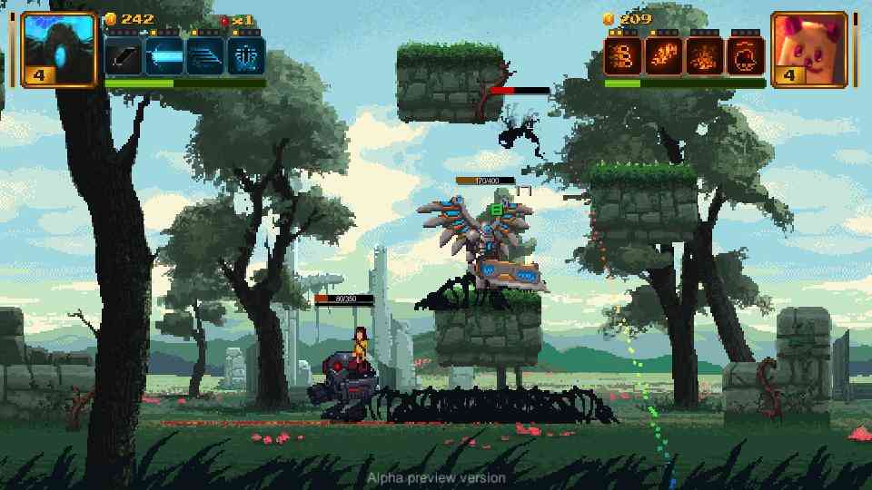 My character was all about jumping through the air marking enemies, then using a teleport attack to slash through them, while the boy with the phoenix mostly relied on the phoenix casting fireballs and fire streaks all over the place. The two synergized amazingly and we ripped through stage after stage. Quite honestly, I think my wife was much more effective playing her phoenix boy than I was with my gladiator. She picked it up really quickly and became proficient in no time. We managed to make our way to the first boss and defeat it, at which point the demo came to an end.