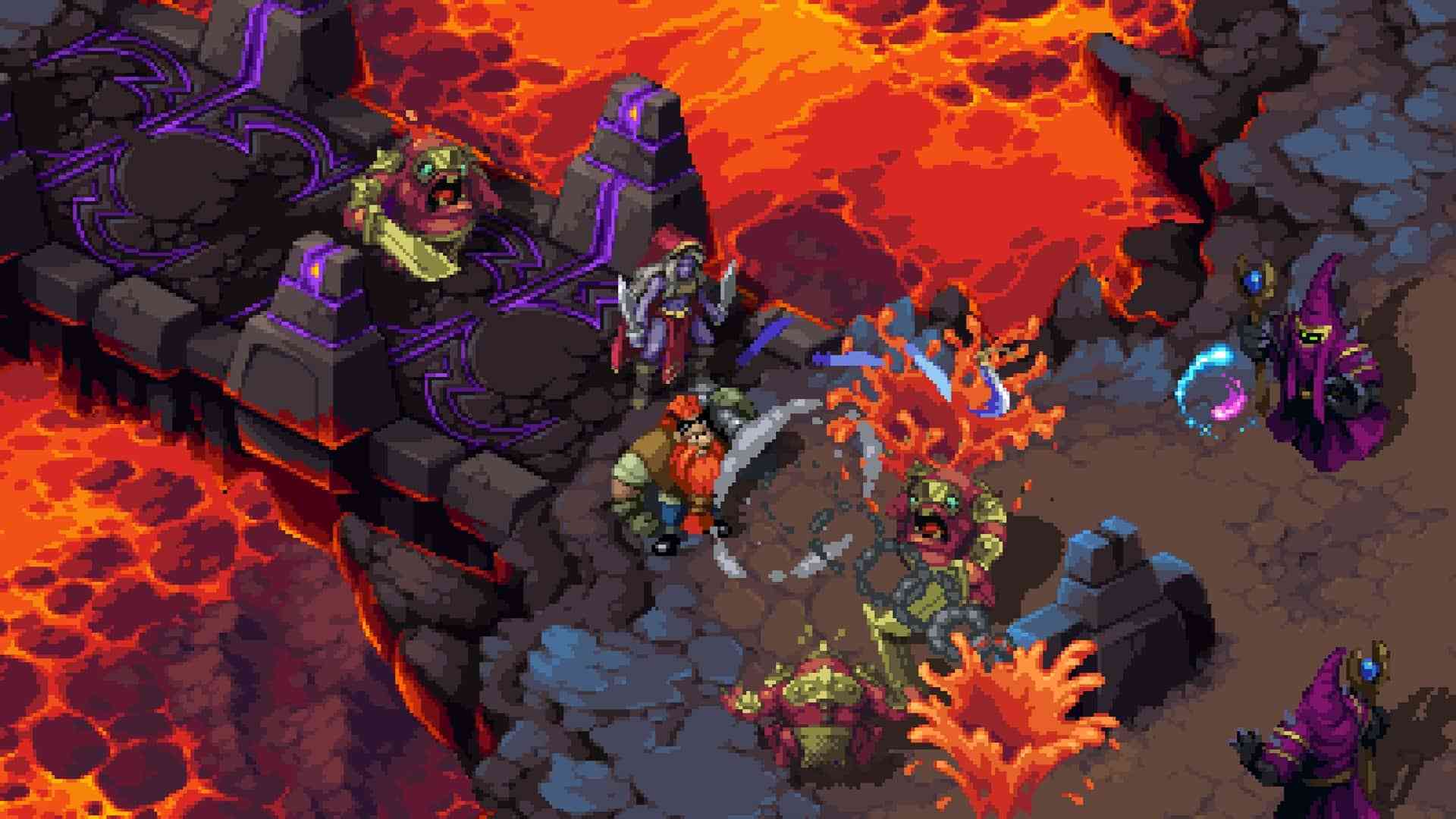 The quality of the pixel art can’t be overstated. Henk Nieborg is one of the best in the business, and it shows. Every screen is a work of art, one brought to life by fluid movement and exquisite detail. Your character, the enemies, the effects, the backgrounds, and the objects are all pure pixel art perfection. The way the druid’s whole body folds up for every blast from his staff is mesmerizing. Watching the ranger flow like a river from target to target has equal hypnotic power. If it wasn’t so dangerous, I’d be constantly stopping to watch these fighters do their thing. Every motion encourages careful observation.