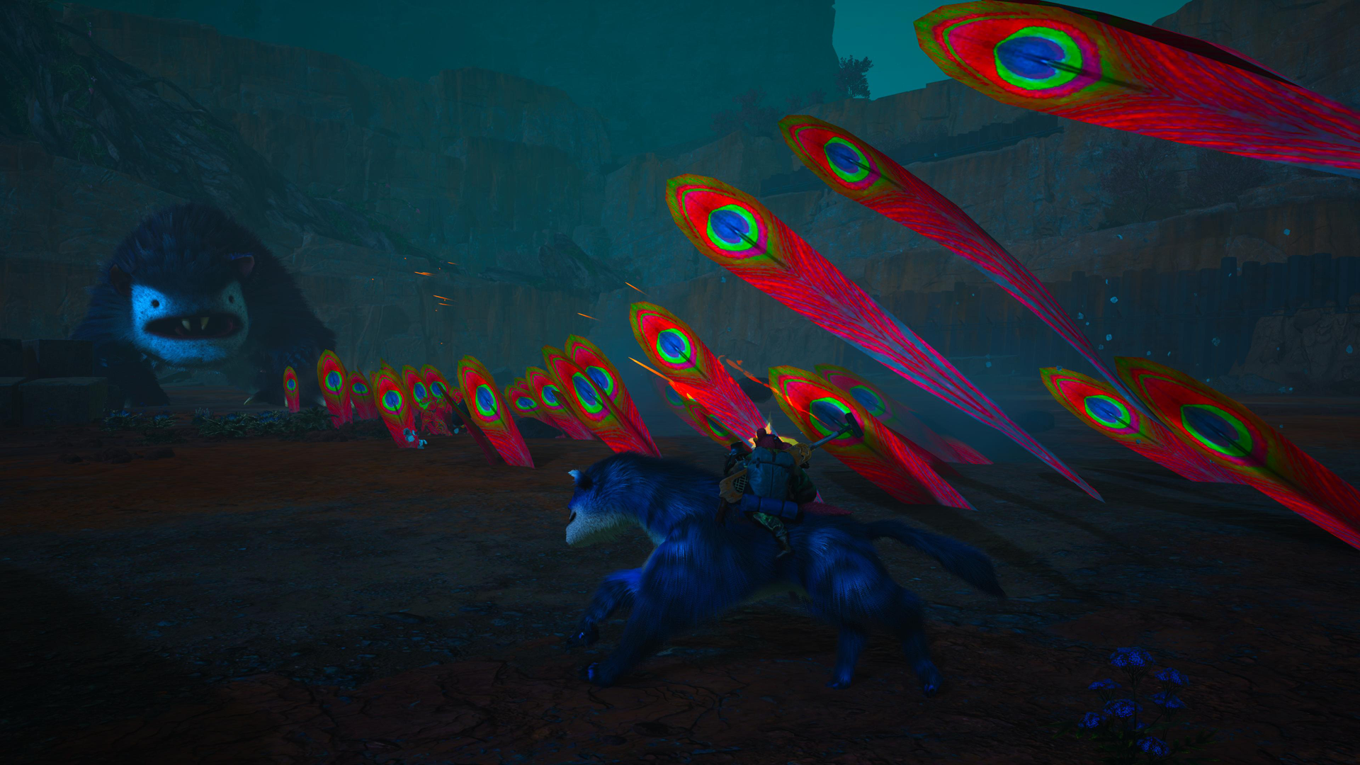 For a PlayStation 5 game, Biomutant isn’t going to blow you away with visuals. Originally released for last-generation consoles, it wasn’t a visual powerhouse to begin with. The PS5 version lets you switch between performance modes that increase the resolution at the expense of framerate. Others ignore visual fidelity for a much smoother performance. The environments do look nice, whichever option you choose. The sun and moonlight reflect off grassy hills and great draw distance provides glimpses of pretty landscapes. Some interiors, however, look held together by spit and bubblegum. Textures tear regularly and in close, confined spaces, the camera has trouble following the action.Â