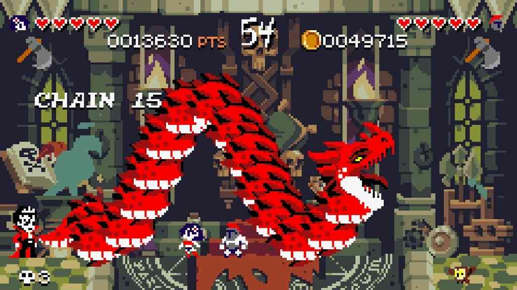 In Curses ‘n Chaos, you must fight through the hordes who seek to extinguish your life, thanks to a curse that was placed on the protagonists, Lea and Leo. Fortunately, they aren’t alone. In Tribute Games’ latest endeavour, they opted for a different take on the couch co-op/beat-em-up titles many of us hold in such high regard. You’ll battle plenty of enemies across a variety of locations, but you’re confined to one screen. Thankfully, you have the aid of a plucky Alchemist known as Allison and her companion, Owliver, who will happily pick up a spare item for you to store for later. These items range from simple weapons and healing items, but you can craft them into much more potent tools, even using the forces of nature to your advantage. As you battle across various stages and slay giant bosses, you near your goal of finding the components needed for making the Elixir of Life, which can break any curse, especially the one laid upon our hero and heroine. Well-crafted chiptunes, responsive gameplay, and some interesting mechanics are slightly marred by a cluttered HUD and a bit too much chaos, however. There are a few gripes I have with the game that prevent it from being that truly addictive title that Tribute set out to achieve.