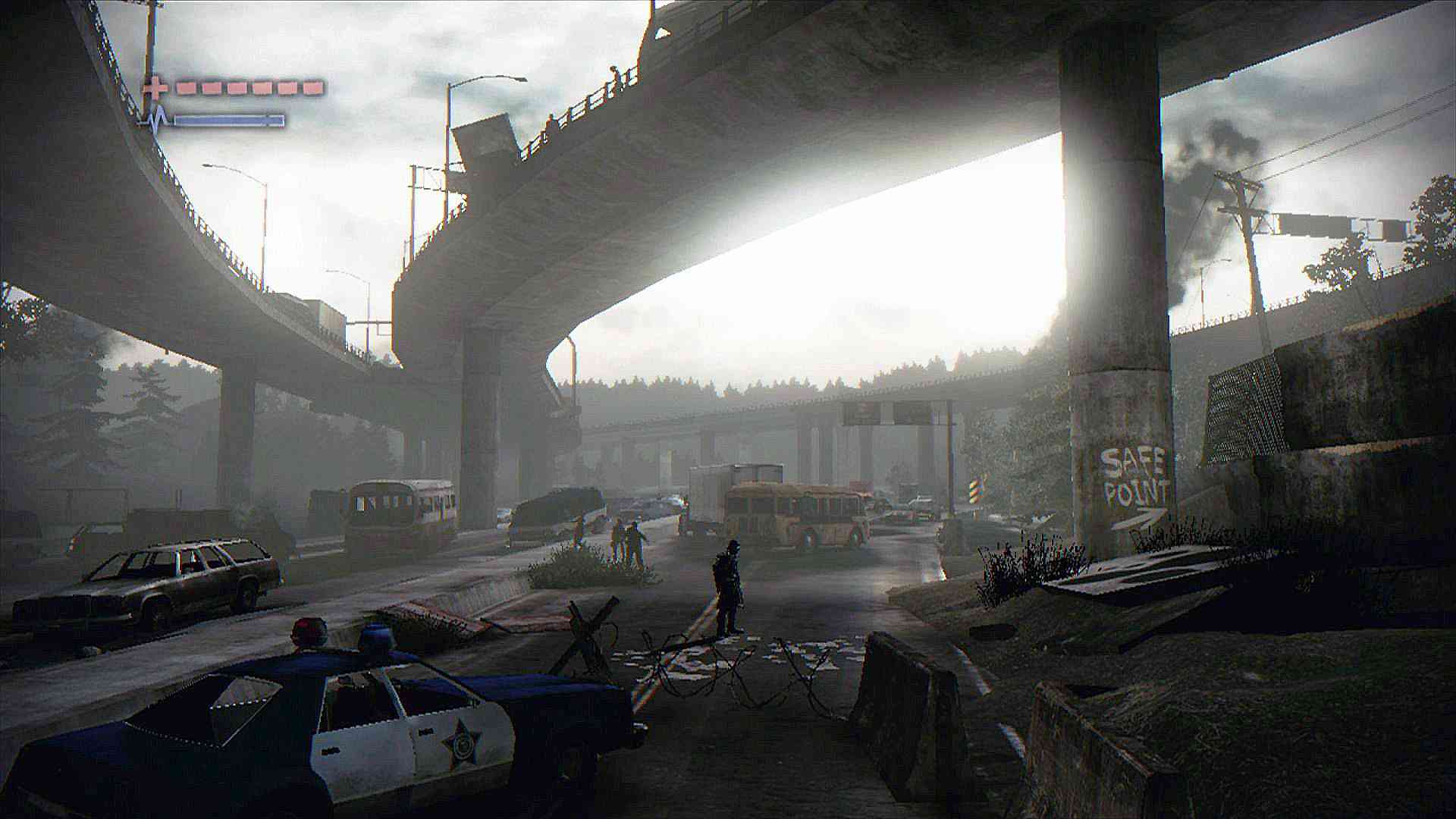 Rarely can one call a zombie game beautiful. Most are gory and dark, using the dim setting to amp up the tension. Deadlight does the opposite, it fades out the foreground characters to shadows, choosing instead to focus on the beautifully rendered locals. When Wayne is scaling buildings, there is a true sense of scale with the city ruins looming in the background. It’s this decision to focus on the setting as a key player that truly makes Deadlight an enjoyable experience, you’ll want to keep moving just to see what could be ahead.