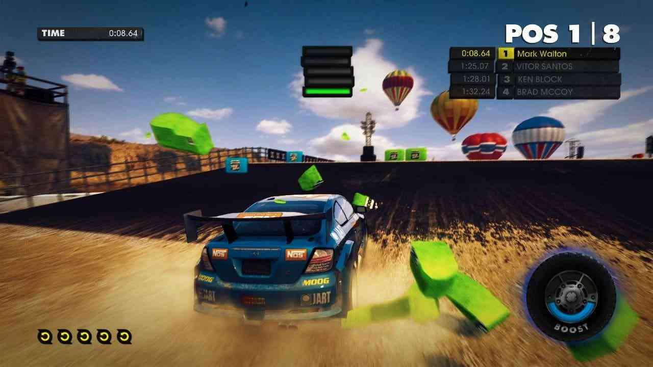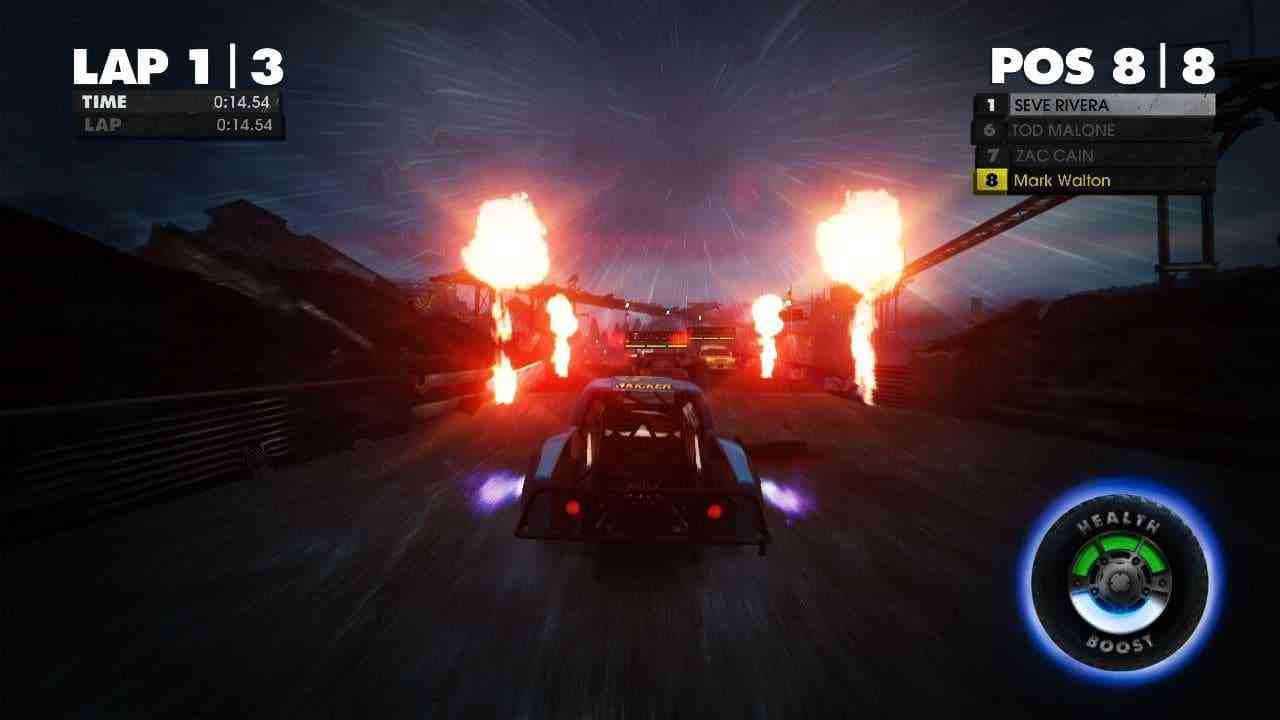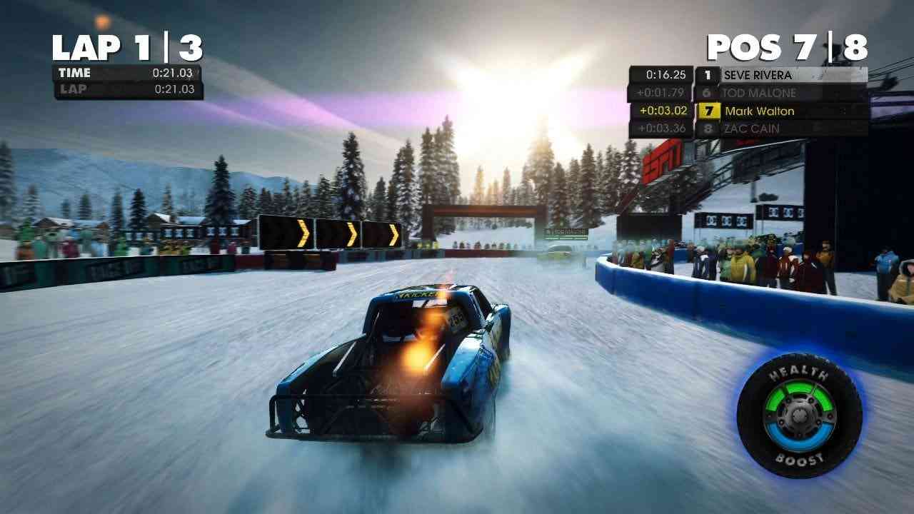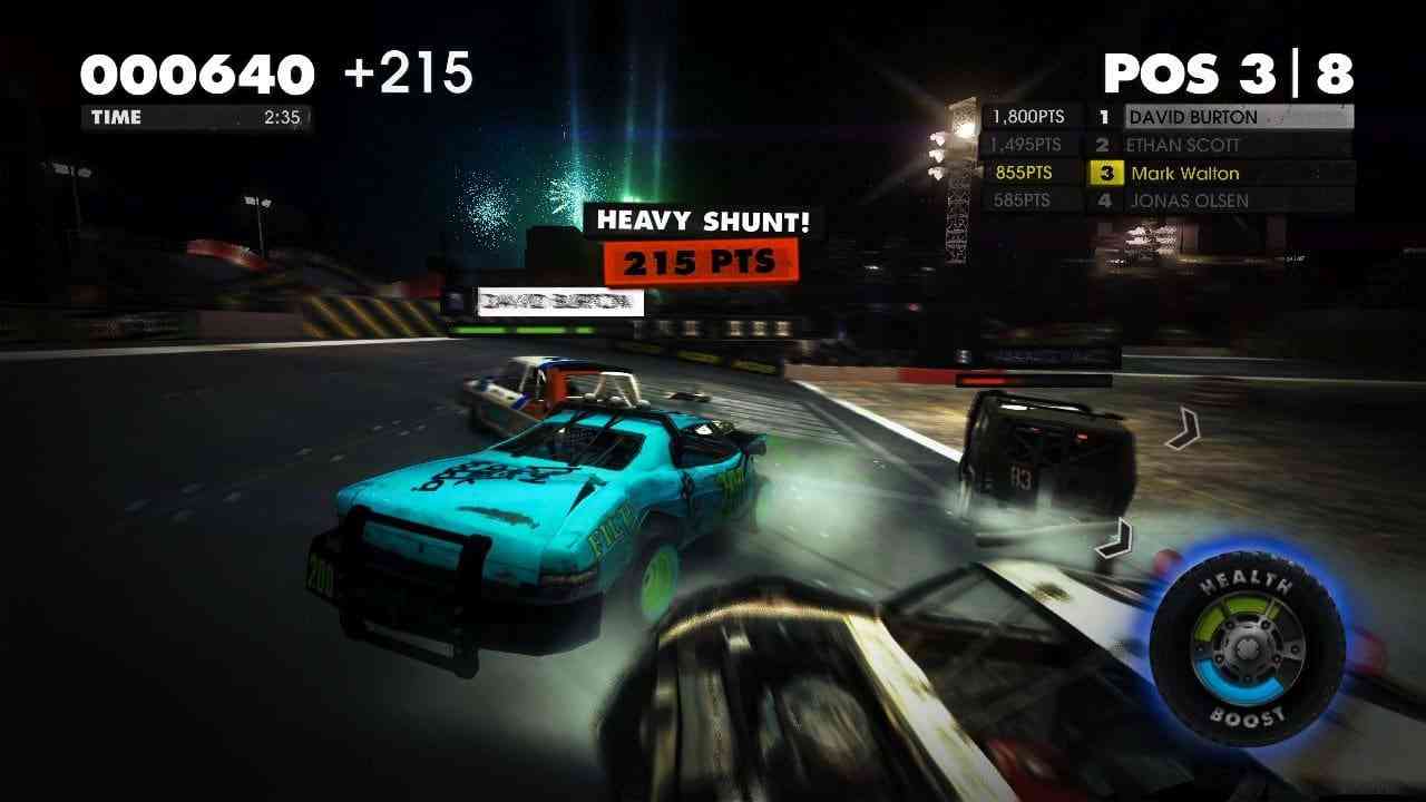 First and foremost, Dirt Showdown is by far the most arcade oriented game of Codemasters’ offerings to date.  Unlike its predecessors, Showdown does away with rally style events and focuses on the gymkhana and head-to-head event types.  Purists might see this as cause for concern but you should not go into this game expecting a sim-like experience.  The action in Showdown is as much about crashing and smashing as it is about racing.  Not only is taking other cars out a perfectly acceptable tactic, it is encouraged (as demonstrated by the introduction of both health and boost meters on your screen).