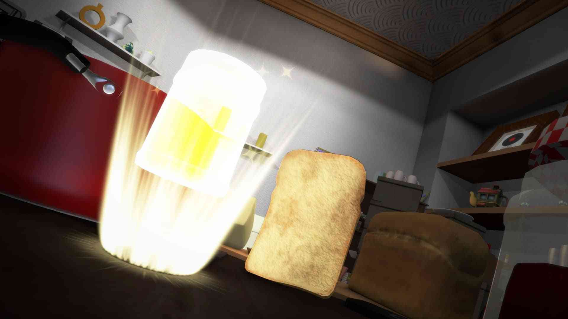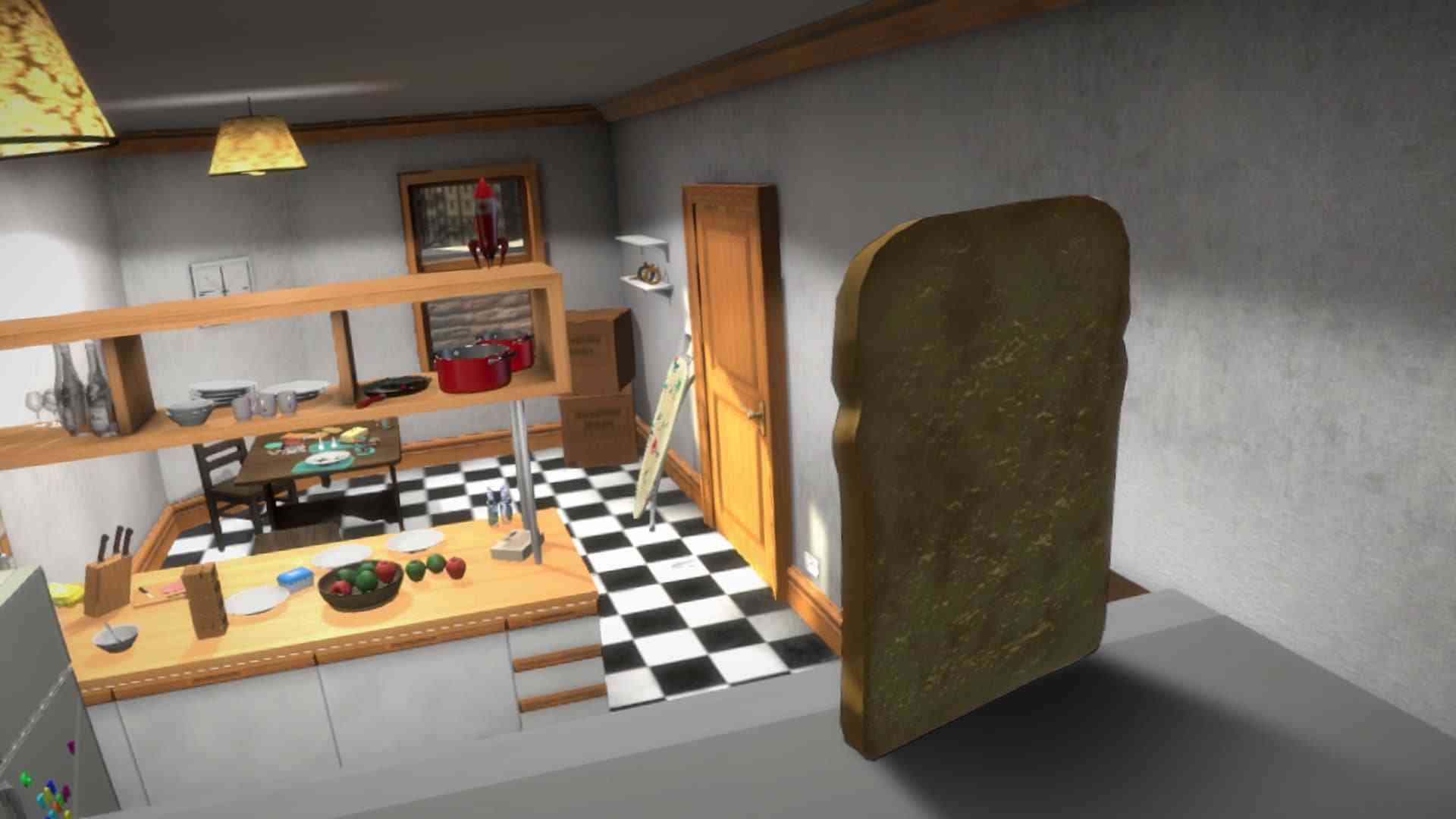 What I mean by that is that it’s not enough to simply toast yourself, you need to stay edible as well. Crawling along the ground is a poolish idea; the yeast appealing thing I can think of is a filthy piece of bread. So the game becomes an exercise in creative manoeuvring of your environments. That’s easier said than done though, since I Am Bread is basically the QWOP of bread simulators. Each of the shoulder buttons corresponds to a corner of your slice. As you can imagine things get crazy as you attempt to climb along walls and ceilings to try to reach that toasting device. It wasn’t long before my eyes glazed over and I was just playing on instinct. It’s kind of Zen like that.