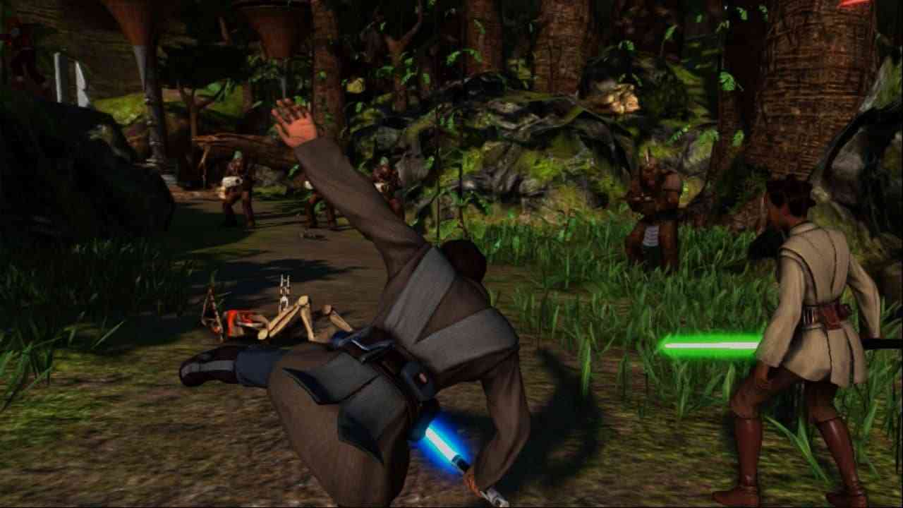 As you play you will instantly know from the sound you hear that this is indeed a Star Wars game.  Sound effects have been faithfully recreated for this game, from the distinctive sound of laser blasters, a Wookies ‘growl’, to the famed whoosh of your lightsaber as it cuts through the air, LucasArts has lent its library of sounds to this game to bring an authentic audio experience.  Of course all the music is symphonic too, as it has that big sweeping feeling it has in the movies.  If I have one complaint, and it is somewhat major in this area, it is the voice acting.  The majority of the voice actors are voice doubles, so you’ll find that many of the characters are not those you listened to in the movies.  Sure, they try to do a good job, but man, some of the voice doubles really aren’t what you would hope for.