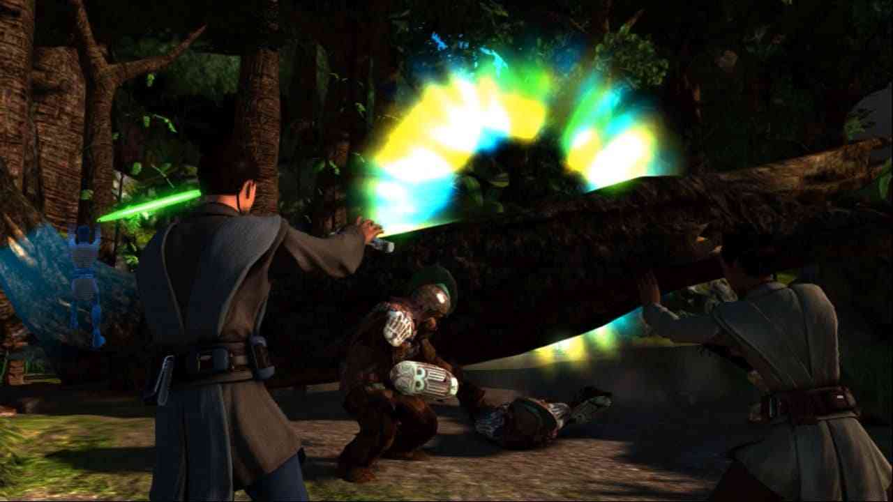 At glance the control seems really cool, and it feels neat for a short time, but once you start to battle, and in this case it is on Kashyyyk where numerous battle droids make their presence felt, Kinect Star Wars starts to show its weaknesses.  First off the sensor cannot keep up to the speed of your movements.  So if you start to wield your Lightsaber quickly there is a delay mimicking your movements on the screen.  There are even times when your Lightsaber does not mimic your movement at all.   Add to this woe that using the force is even more frustrating.  From your force pushes to picking up and throwing objects/enemies with your force power, it seems to be more luck then accuracy when you manage to do such.