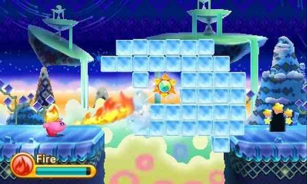 On the topic on collectibles, Triple Deluxe features Sun Stones. Each stage has anywhere from two to four of these sparkly gems to pick up. The boss of each world requires you find a certain number of these to fight them. If you manage to pick up each and every one in all the in-game worlds you’ll unlock a bonus stage too. Among the plethora of collectibles in the game is a rather interesting set of key chains. They serve no purpose really, but are neat little tidbits of Kirby history. Each keychain is a piece of pixel artwork from previous entries in the Kirby franchise. They range from the original game all the way up to Mass Attack. They can be viewed in a gallery off of your main menu, and I must say the attention to detail in very entertaining. Aside from the obvious throwback down memory lane, each keychain can be rotated to reveal a little HAL Laboratories logo on its backside. In addition, the 3DS can be tilted to either side to “swing” the keychain back and forth; I spent more time doing this than I care to admit.