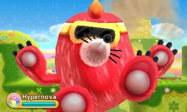 Not all of his power-ups play the same, so developer HAL Laboratory has been kind and included an attacks list in the pause menu. This time around Kirby has been given a sort of “super power-up” called Hypernova. After eating a Miracle fruit he gains Hypernova and can eat literally anything in his way. From an outside perspective it’s a pretty obvious extension from his standard abilities, but it’s used quite well in Triple Deluxe. There are times it’s used simply to consume, but other times his mouth-vacuum is utilized to pull and drag objects into place or open up new areas.
