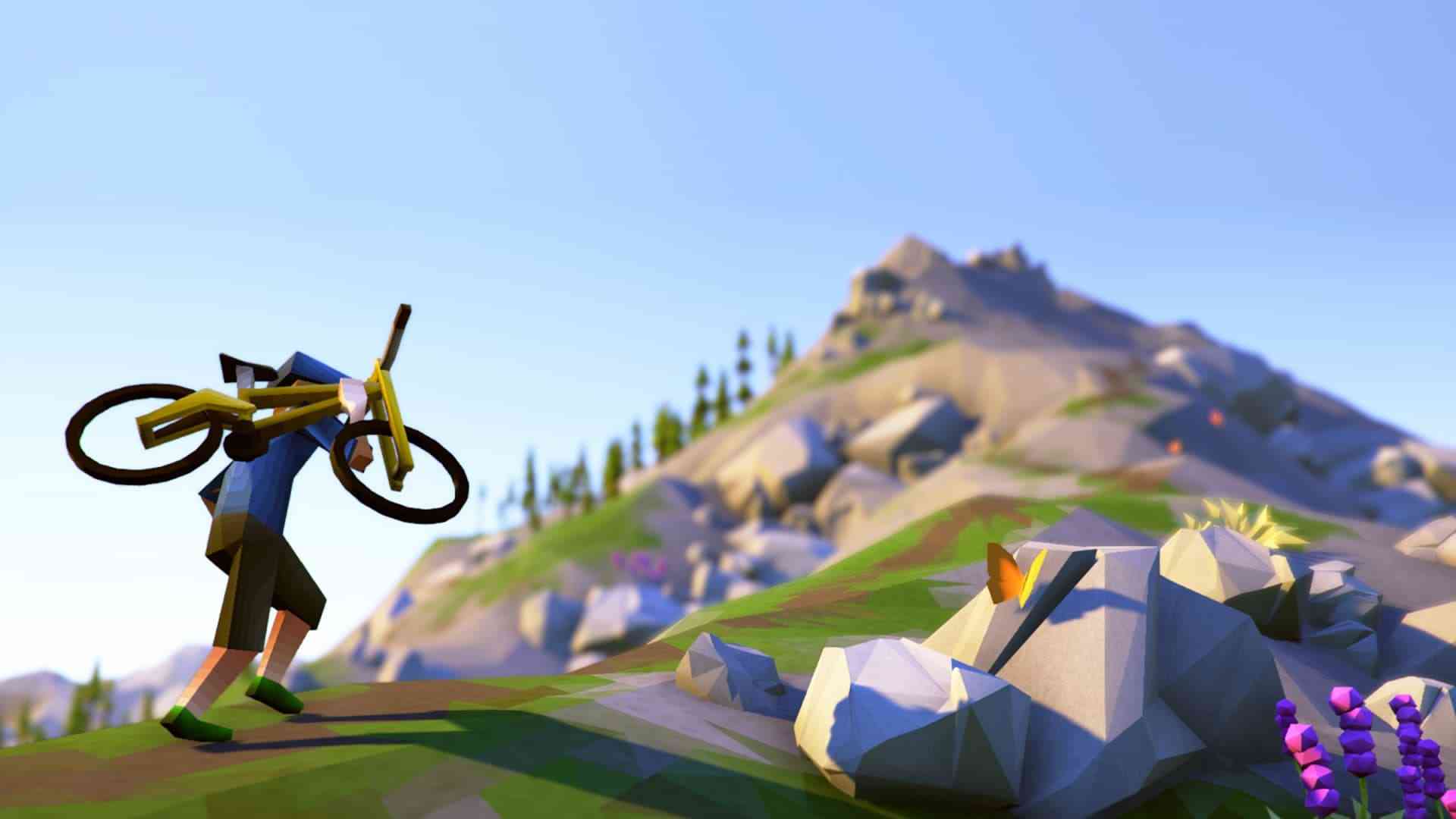 I am, of course, referring to the cycling. There’s enough resistance, reaction, and regular feedback to make every path feel distinct, every action feel real. Is this anything like actually cycling down a treacherous mountain path? Not at all! But the game feel succeeds in taking you to that world with laser-guided precision. I’m not sure how, but the act of cycling downhill taps into some primal childhood fantasy. Something about exploring an untamed wilderness with a bike feels very much like a childhood dream explored in generous detail.