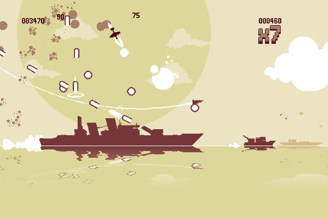 The goal of the game is simple; try to get the highest score that you can. You hit “Up” on your keyboard or gamepad to launch your customized fighter plane and fly around the map, destroying enemies that range from planes to boats and even blimps. Before the start of each round you’re able to customize your fighter with unlockable parts. These let you change things like your main weapon and the aircraft’s body. Do you want to fire lasers? Go right ahead. Want to ditch that armor upgrade for something more nimble? Knock yourself out. The game’s description says that there are over 125 different combinations you can use, but as is the way with these systems its likely many players will just figure out which build works best for them and stick with it. That being said, experimentation is good though and there is a lot that you can experiment with to find that one perfect build.