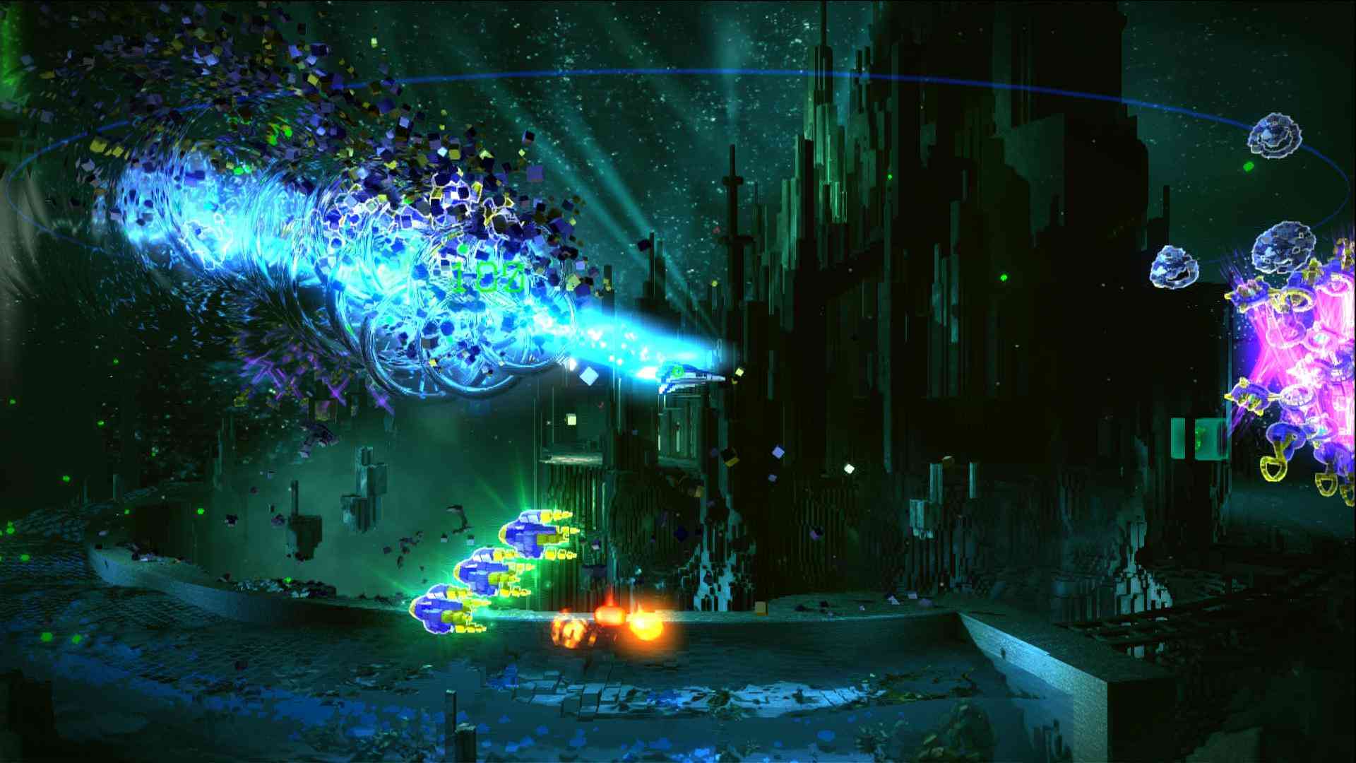 Something that most shooter fans will take note of is that the gameplay offers a fresh take on the usual 2D shooter screen. Developer Housemarque has taken the normal flat back and forth landscape of most shooters and transformed it into a cylinder so to speak. The settings you do battle in require you go in a circle, hence the whole cylinder idea. You’ll go around and around as you face numerous waves of enemies. Don’t worry though; you won’t get dizzy as you do. As you avoid the various enemies and their attempts to destroy your ship you are tasked to “Save the Last Humans”, something that brings back a feeling of Defender or Choplifter, but for the new age. Finding that one human on the other side of the level who has been let loose, picking him up and taking him to safety is pretty satisfying in its own right as you are not only saving that little human, but you get ship upgrades or bonus points too. I found this combination of shooter and saviour pretty neat and quite addictive, given that I came back to the game more often then I anticipated.