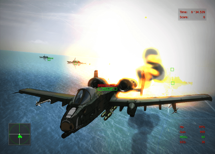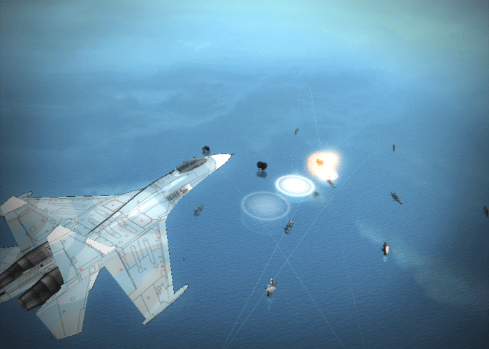 Today, it seems that everything made by big publishers aims for photo-realistic graphics, leading to many titles looking very similar to each other. Cel-Shaded graphics are a good way to distinguish yourself from the pack when combined with unique sound design and a beautiful art-style. Unfortunately, it can also be used as a way to avoid detailing things up-close because you don’t have the talent or budget to do the job properly and this is the camp that Vector Thrust falls into. Planes look decent enough, but everything else from explosions, ground textures and particles look like a game released a decade ago.